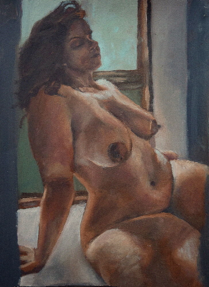 9x12 portrait of @beingberhardina painted with oil paint on mixed media paper.